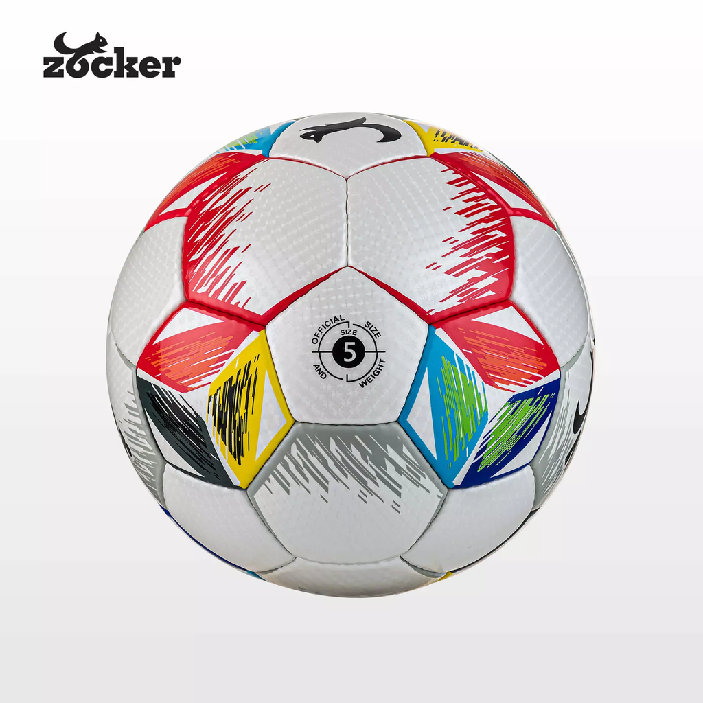 Bóng Zocker Inspire được thiết kế đẹp với nền trắng chủ đạo, các họa tiết đa màu sắc được bố trí xen kẽ tạo nên các mảng màu nổi bật, mang đến ấn tượng về sự trẻ trung, sôi động.