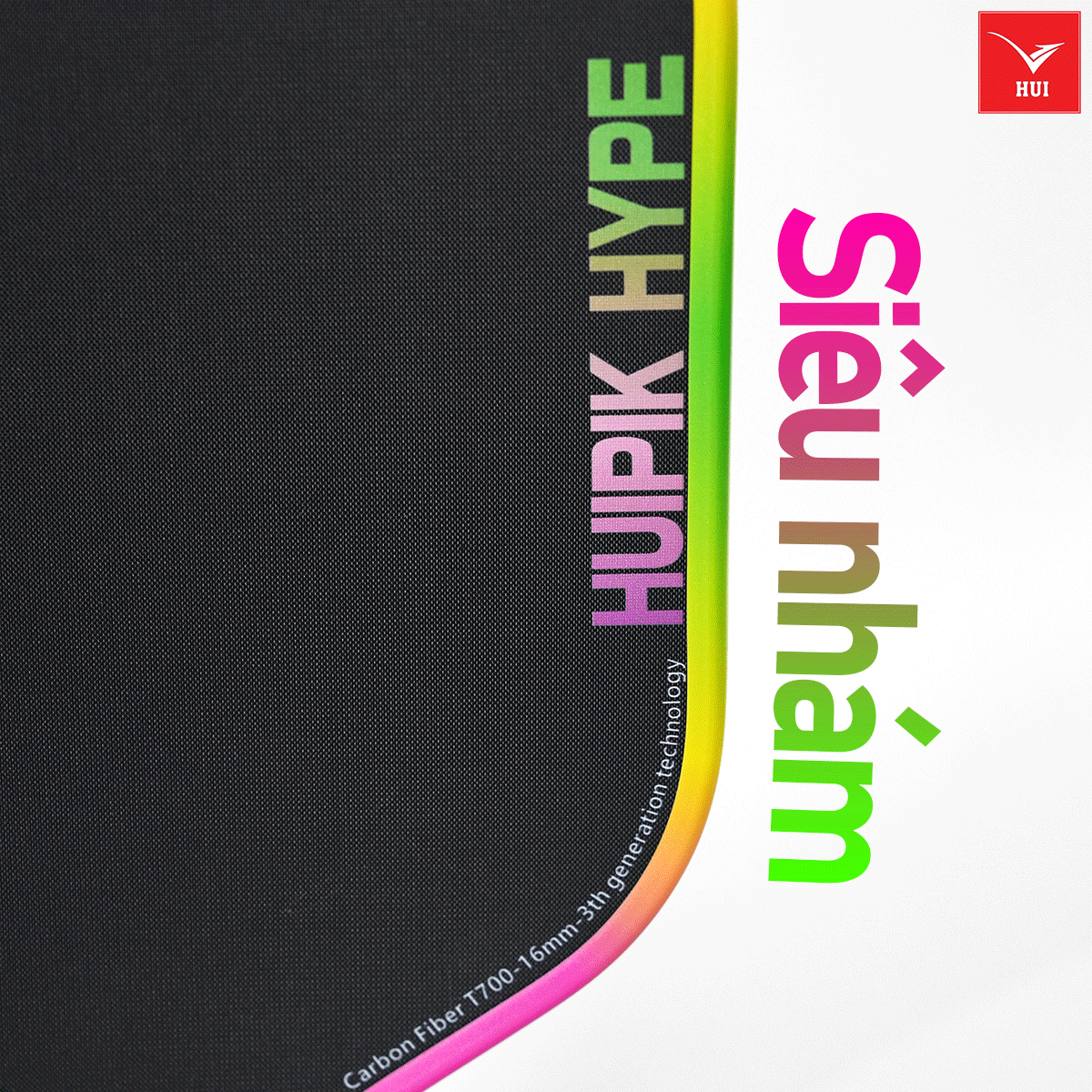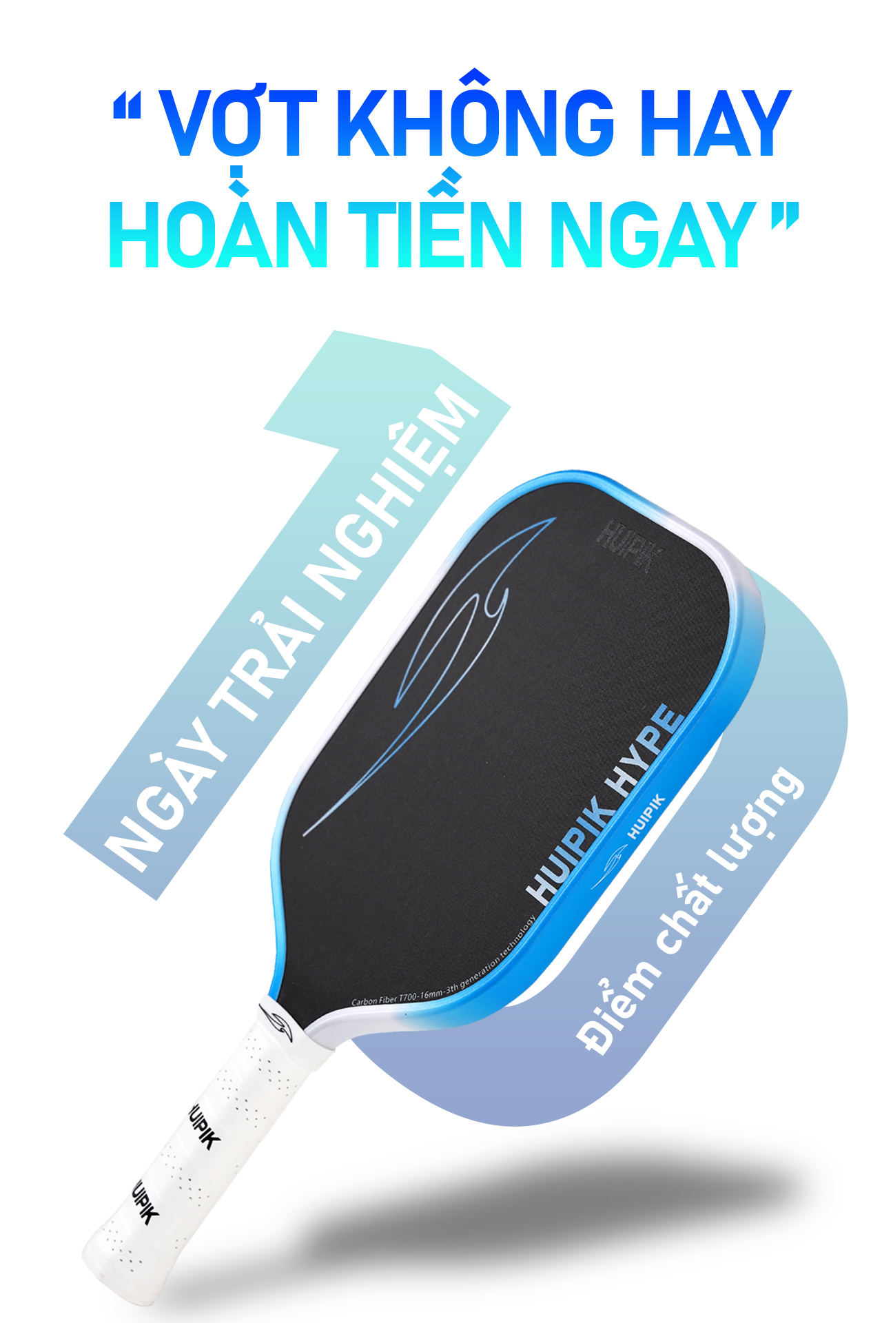 Tên sản phẩm: 🏏 Vợt Pickleball Huipik Hype - Carbon T700 siêu nhám - 16mm Cao cấp